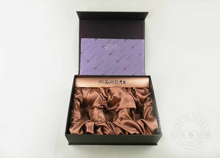 這款由世紀金橋為浙江客戶制作的茶葉包裝盒,西湖龍井茶全國聞名,針對西湖龍井茶來設計制作包裝盒十分講究,要體現(xiàn)西湖龍井的品味特色,體現(xiàn)文化和尊貴的氣質(zhì)。一個禮盒放入三罐,。內(nèi)置硫酸紙增加云山霧罩的朦朧感,毛筆書法體現(xiàn)傳統(tǒng)文化。